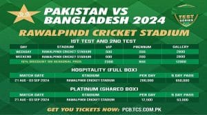 راولپنڈی (پی این آئی)پی سی بی نے راولپنڈی میں پاکستان اور بنگلہ دیش کے ٹیسٹ میچ کے لیے ٹکٹوں کی قیمتوں کا اعلان کر دیا۔