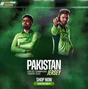پی سی بی نے ایک اور پیغام میں جرسی کی تصاویر شیئر کی، جس میں بابراعظم اور شاہین شاہ آفریدی نے آئی سی سی ایونٹ کی جرسی زیب تن کررکھی ہے۔اس تصویر کے کیپشن میں پی سی بی نے درج کیا کہ ’جوش و جذبے کے ساتھ پہنیں اور ٹیم کی کھلاڑیوں کی حوصلہ افزائی کریں۔