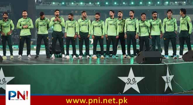 پاکستان کرکٹ بورڈ ( پی سی بی) نے سماجی رابطے کی ویب سائٹ پر آئی سی سی چیمپئنز ٹرافی میں قومی ٹیم کی کٹ شیئر کی۔پی سی بی کی قومی ٹیم کی نئی کٹ کے ساتھ تصاویر سوشل میڈیا پر شیئر کی ہیں، تمام ہی کھلاڑی ایک قطار میں کھڑے ہیں۔قذافی اسٹیڈیم میں موجود شائقین کرکٹ کی موجودگی میں ٹیم کے کھلاڑیوں نے جیکٹ اتاری اور اُن کے سامنے جرسی کا رنگ اور انداز پیش کردیا۔