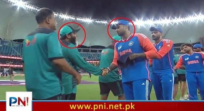 بھارتی کپتان سوریا کمار یادو اور ان کی ٹیم کو پاکستان کے سابق لیگ اسپنر اور بنگلادیش کے اسپن بولنگ کوچ مشتاق احمد سے مصافحہ کرنا پڑا۔ سوشل میڈیا پر یہ تصویر تیزی سے پھیلی، اور صارفین سوال اٹھانے لگے: “اب بھارتی ٹیم کی حب الوطنی کہاں گئی؟”