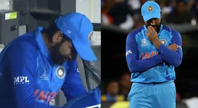 اسلام آباد(پی این آئی)ٹی ٹوئنٹی ورلڈکپ کے سیمی فائنل میں شکست کے بعدروہت شرما کی نم آنکھوں والی ویڈیو سوشل میڈیا پر وائرل ہو رہی ہے۔نجی ٹی وی کے مطابق سوشل میڈیا پر روہت شرما کی ایک اور ویڈیو بھی وائرل ہو رہی ہے جس میں بھارتی ٹیم کے ہیڈ کوچ راہول ڈریوڈ کوروہت شرما کو حوصلہ دیتے دیکھا جا سکتا ہے۔خیال رہے کہ انگلینڈ نے ٹی ٹوئنٹی ورلڈ کپ کے سیمی فائنل میں بھارت کو دس وکٹوں سے عبرتناک شکست دیکر فائنل کیلئے کوالیفائی کرلیا