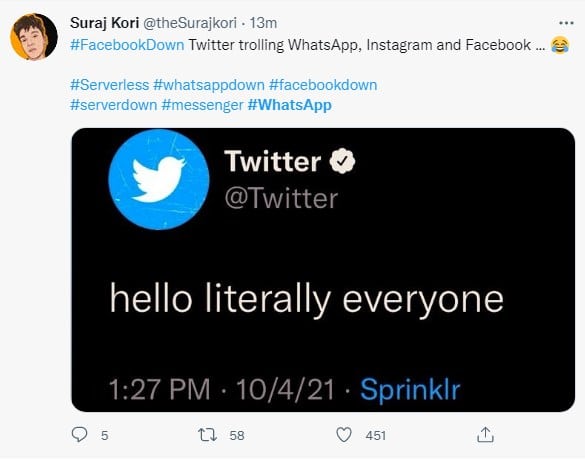 فیس بک ، واٹس ایپ ، انسٹا گرام ڈائون ۔۔۔ٹویٹر کی سروسز جاری، ٹویٹر پر دلچسپ میمز کی بارش