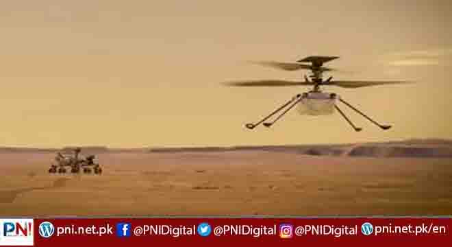 لاس اینجلس(شِنہوا)ناسا کے مریخ ہیلی کاپٹر نے سیارے پر48پروازیں مکمل کر لی ہیں۔ناسا کے مطابق48ویں پرواز منگل کو مکمل ہوئی جس میں روٹر کرافٹ نے 12 میٹر کی بلندی پر پہنچ کر 149.9 سیکنڈ تک 398 میٹر کا سفر طے کیا۔ہیلی کاپٹر جس کا نام انگینیوٹی ہے، 18 فروری 2021 کو مریخ کے جزیرو کراٹر پرپہنچا جوناسا کے پرویزروینس روور کی سطح سے منسلک تھا۔