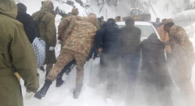 فراہم کیا جارہا ہے۔ لوگوں کو محفوظ شیلٹر بھی فراہم کیا گیا۔ ایف ڈبلیو او کی جوان مشینری کے ہمراہ روڈ کھولنے کیلئے کام جاری ہے۔دوسری جانب سیکرٹری اطلاعات پیپلزپارٹی پارلیمنٹرینز شازیہ مری نے مری میں سیاحوں کے اموات پر اظہار افسوس کرتے ہوئے کہا ہے کہ مری میں برفباری نے نالائق حکومت کو بے نقاب کردیا ہے ۔ اپنے بیان میں انہوںنے کہا کہ پنجاب کے نااہل وزیر اعلیٰ سے مری بھی سنبھالا نہیں جا رہا ہے ۔شازیہ مری نے مری میں سیاحوں کو پیش آنے والی