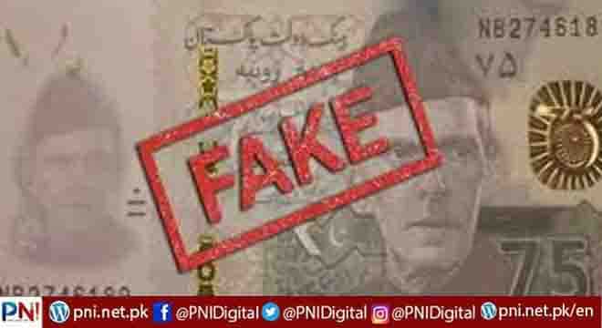 کراچی (پی این آئی) مملکت خداداد پاکستان کی 75ویں سالگرہ کے موقع پر اسٹیٹ بینک کی جانب سے 75 روپے مالیت کا ایک یادگاری نوٹ جاری کیا جانے والا ہے۔ گزشتہ چند روز سے 75 روپے کا ایک نوٹ سوشل میڈیا پر وائرل ہے جس پر صارفین اپنی آراء دے رہے ہیں۔ تاہم اس حوالے سے اسٹیٹ بینک کے ترجمان کا کہنا ہے کہ 75 روپے کے نوٹ کا وائرل ڈیزائن جعلی ہے۔ اسٹیٹ بینک کی جانب سے وضاحتی بیان جاری کیا گیا ہے جس میں 75 ویں یوم آزادی کی مناسبت سے جاری کیے جانے والے 75 روپے کے نوٹ کے وائرل ڈیزائن کو جعلی قرار دیا گیا ہے۔