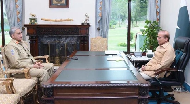 اسلام آباد(پی این آئی)وزیراعظم شہبازشریف سے آرمی چیف جنرل قمرجاوید باجوہ کی ملاقات ہوئی۔نجی ٹی وی ذرائع کے مطابق وزیراعظم شہباز شریف اور آرمی چیف جنرل قمر جاوید باجوہ کی ملاقات میں ملک کی موجودہ اندرونی اور بیرونی سکیورٹی کی صورتحال پر تبادلہ خیال کیا گیا۔ذررائع کا بتانا ہےکہ ملاقات میں پاک فوج کے پیشہ ورانہ امور پر بھی گفتگو ہوئی۔