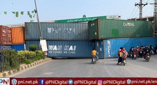 اسلام آ باد (آئی ا ین پی ) پاکستان تحریک انصاف کے ممکنہ لانگ مارچ کے پیش نظر اسلام آباد کی ضلعی انتظامیہ نے تیاریاں شروع کردیں اور شہر میں کنٹینر پہنچنا شروع ہو گئے ہیں۔ اسلام آباد انتظامیہ نے کنٹینرزفیض آباد پہنچا دیئے، رپورٹ کے مطابق لانگ مارچ کی صورت میں فیض آباد کو مکمل طور پر سیل کردیا جائے گا۔ کنٹینرز ہر داخلی اور خارجی راستوں پر رکھے گئے ہیں، جن میں مری روڈ کی طرف سڑک اور ایکسپریس ہائی وے کی طرف آنے والے راستے بھی شامل ہیں۔