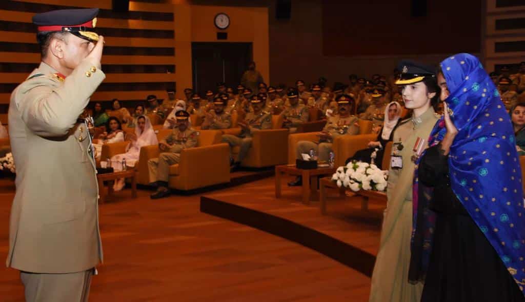 راولپنڈی (پی این آئی) پاکستان آرمی کے جنرل ہیڈ کوارٹرز میں شہداء اور غازیوں کے اعزاز میں آج پیر کے روز تقریبِ تقسیم اعزازات کا انعقاد کیا گیا۔