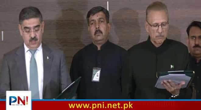 اسلام آباد (پی این آئی) بلوچستان سے تعلق رکھنے والے بلوچستان عوامی پارٹی کے رہنما انوار الحق کاکڑ نے بطور نگران وزیراعظم پاکستان منصب کا حلف اٹھا لیا۔ ۔۔صدر پاکستان ڈاکٹر عارف علوی انوار الحق کاکڑ سے بطور نگران وزیراعظم عہدے کا حلف لیا، تقریب میں سابق وزیراعظم شہباز شریف کے علاوہ سابق وفاقی وزرا بھی شریک تھے۔۔۔۔ میڈیا رپورٹس کے مطابق انوار الحق کاکڑ نے پاکستان کے آٹھویں نگران وزیراعظم کے عہدے کا حلف اٹھایا ہے۔ یہ بات اہم ہے کہ انوار الحق کاکڑ نے بطور نگران وزیراعظم غیر جانبدار رہنے کے لیے سینیٹ کی نشست سے استعفیٰ بھی دے دیا ہے جو چیئرمین سینیٹ نے منظور بھی کر لیا ہے۔۔۔۔