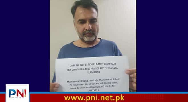 گزشتہ شب ایف آئی اے کی جانب سے خالد جمیل کی ایک تصویر جاری کی گئی جس کے مطابق صحافی اُن کی تحویل میں ہیں۔۔۔۔۔خالد جمیل پر پیکا قانون کے سیکشن 20 کے تحت مقدمہ درج کیا گیا ہے۔۔۔۔۔ بتایا گیا ہے کہ صحافی کے خلاف مقدمہ 20 ستمبر کو درج کیا گیا تھا جس میں پریونشن آف الیکٹرانک کرائم ایکٹ (پیکا) کا سیکشن 20 لگایا گیا ہے۔۔۔۔۔