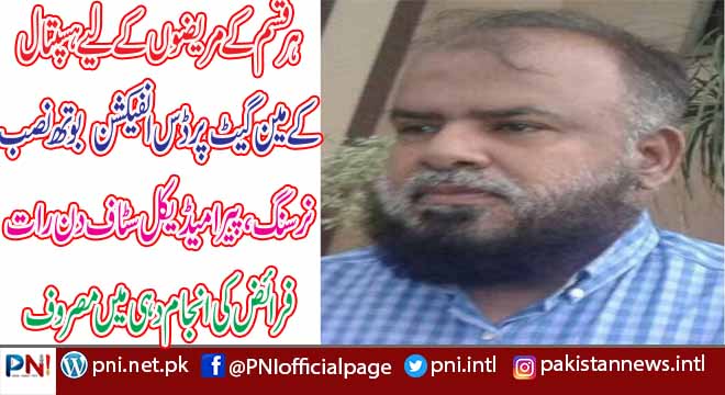 جہلم(طارق مجید کھوکھر)کرونا وائرس سے بچاؤ کے لیے افواج پاکستان، ضلعی انتظامیہ، ضلعی پولیس اور محکمہ صحت نے جو اقدامات کیے ہیں اس کے خاطر خواہ مثبت اثرات برآمد ہورہے ہیں اس ضمن میں ڈسٹرکٹ ہیڈ کوارٹرز ہسپتال جہلم کا جب دورہ کیا تو اس میں کرونا وائرس کے مریضوں کی تعداد 31 تھی جبکہ ان میں سے 23 کے رزلٹ پازیٹو آئے تھے جبکہ پانچ کے نیگٹو اسی طرح تین مریضوں کے ٹیسٹ اسلام آباد بھجوا دیئے گئے ہیں اس موقع پر چیف کنلسٹنٹ پلمونالوجسٹ ڈاکٹر حفیظ الرحمان نے بتایا کہ ہسپتال میں آنیوالے ہر قسم کے مریضوں کے لیے ہسپتال کے مین گیٹ پر ایک ڈس انفیکشن بوتھ نصب کروایا ہے جبکہ جو مریض اور ان کے لواحقین ہسپتال میں علاج کے لیے آتے ہیں انہیں اس بوتھ سے گزار کر جس میں پانی اور کلورین کا چھڑکاؤ کرنے کے بعد انہیں ہسپتال میں آنے دیا جاتا ہے جس کیوجہ سے بہتر صورتحال ہورہی ہے انہوں نے کہاکہ لوگ جتنا اپنے آپ کو محدود رکھے گے اتنا ہی محفوظ رہینگے ۔۔۔۔۔۔۔۔۔۔۔۔۔۔۔۔۔۔۔ پاکستان نیوز انٹرنیشنل (پی این آئی) قابل اعتبار خبروں کا بین الاقوامی ادارہ ہے جو 23 مارچ 2018 کو قائم کیا گیا، تھوڑے عرصے میں پی این آئی نے دنیا بھر میں اردو پڑہنے، لکھنے اور بولنے والے قارئین میں اپنی جگہ بنا لی، پی این آئی کا انتظام اردو صحافت کے سینئر صحافیوں کے ہاتھ میں ہے، ان کے ساتھ ایک پروفیشنل اور محنتی ٹیم ہے جو 24 گھنٹے آپ کو باخبر رکھنے کے لیے متحرک رہتی ہے، پی این آئی کا موٹو درست، بروقت اور جامع خبر ہے، پی این آئی کے قارئین کے لیے خبریں، تصاویر اور ویڈیوز انتہائی احتیاط کے ساتھ منتخب کی جاتی ہیں، خبروں کے متن میں ایسے الفاظ کے استعمال سے اجتناب برتا جاتا ہے جو نا مناسب ہوں اور جو آپ کی طبیعت پر گراں گذریں، پی این آئی کا مقصد آپ تک ہر واقعہ کی خبر پہنچانا، اس کے پیش منظر اور پس منظر سے بر وقت آگاہ کرنا اور پھر اس کے فالو اپ پر نظر رکھنا ہے تا کہ آپ کو حالات حاضرہ سے صرف آگاہی نہیں بلکہ مکمل آگاہی حاصل ہو، آپ بھی پی این آئی کا دست و بازو بنیں، اس کا پیج لائیک کریں، اس کی خبریں، تصویریں اپنے دوستوں اور رشتہ داروں میں شیئر کریں، اللہ آپ کا حامی و ناصر ہو، ایڈیٹر