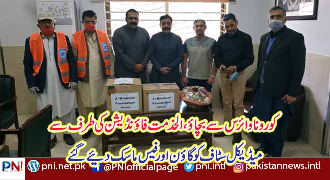 جہلم(طارق مجید کھوکھر)الخدمت فاؤنڈیشن کی طرف سے کرونا وائرس سے بچاؤ کے لیے میڈیکل سٹاف کے لیے گاؤن اور فیس ماسک دیئے گئے۔ الخدمت فاؤنڈیشن کے رہنما یحی عبدالعزیز نے ڈسٹرکٹ ہیڈ کوارٹر ہسپتال میڈیکل سپرنٹنڈنٹ ڈاکٹر فاروق بنگش اور صدر پی ایم اے ڈاکٹر تفسیر حسین گوندل، جنرل سیکرٹری ڈاکٹر باسط الطاف کو میڈیکل سٹاف،نرسنگ سٹاف، پیرا میڈیکل سٹاف کے لیے گاؤن اور فیس ماسک دیئے جس پر میڈیکل سپرنٹنڈنٹ ڈاکٹر فاروق بنگش اور دوسرے تمام ڈاکٹرز نے ان کی اس کاوش کو سراہا ہے۔۔۔۔۔۔۔۔۔۔۔ پاکستان نیوز انٹرنیشنل (پی این آئی) قابل اعتبار خبروں کا بین الاقوامی ادارہ ہے جو 23 مارچ 2018 کو قائم کیا گیا، تھوڑے عرصے میں پی این آئی نے دنیا بھر میں اردو پڑہنے، لکھنے اور بولنے والے قارئین میں اپنی جگہ بنا لی، پی این آئی کا انتظام اردو صحافت کے سینئر صحافیوں کے ہاتھ میں ہے، ان کے ساتھ ایک پروفیشنل اور محنتی ٹیم ہے جو 24 گھنٹے آپ کو باخبر رکھنے کے لیے متحرک رہتی ہے، پی این آئی کا موٹو درست، بروقت اور جامع خبر ہے، پی این آئی کے قارئین کے لیے خبریں، تصاویر اور ویڈیوز انتہائی احتیاط کے ساتھ منتخب کی جاتی ہیں، خبروں کے متن میں ایسے الفاظ کے استعمال سے اجتناب برتا جاتا ہے جو نا مناسب ہوں اور جو آپ کی طبیعت پر گراں گذریں، پی این آئی کا مقصد آپ تک ہر واقعہ کی خبر پہنچانا، اس کے پیش منظر اور پس منظر سے بر وقت آگاہ کرنا اور پھر اس کے فالو اپ پر نظر رکھنا ہے تا کہ آپ کو حالات حاضرہ سے صرف آگاہی نہیں بلکہ مکمل آگاہی حاصل ہو، آپ بھی پی این آئی کا دست و بازو بنیں، اس کا پیج لائیک کریں، اس کی خبریں، تصویریں اپنے دوستوں اور رشتہ داروں میں شیئر کریں، اللہ آپ کا حامی و ناصر ہو، ایڈیٹر