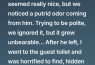 We tried to be polite and pretend not to notice, but as the evening went on, the stench grew worse. It clung to the room long after he moved. By the time he left, both of us were visibly uncomfortable.