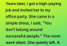 My older sis was 18 when our dad left. She worked two jobs after that. She raised me. She missed sleep, skipped meals, and somehow still made sure I had school supplies, birthday presents, and someone in the audience whenever I was on a stage or a field. Years later, I got a high-paying job and invited her to my office party. She showed up in a simple dress. I felt embarrassed, which still makes me sick to admit. I said, “You don’t belong around successful people.”