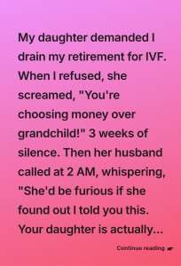 “Your parents? The ones who called me a gold-digger? Who said I trapped you? Who said I’d never give you a baby because you needed treatments?”