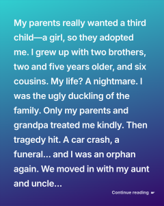 But when I opened the door, the mistress blocked my path. She crossed her arms, chin tilted high. “You’re nobody,” she scoffed.