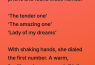 How could she let insecurity poison something so good? Only one name remained. “Lady of my dreams.”