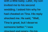 At first I thought she was joking, or maybe misunderstanding something. But the more she spoke, the clearer it became: my son had cheated on her. Not once, but several times.