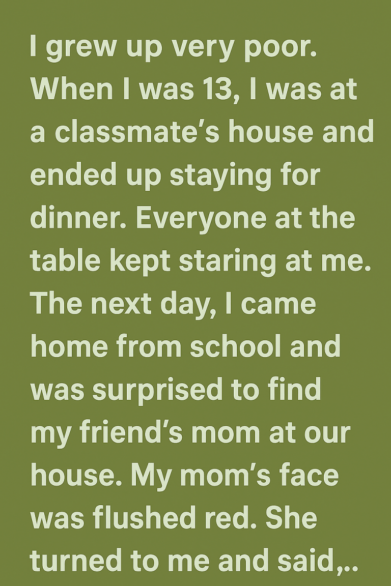 I grew up very poor. The kind of poor where you learn to pretend you’re full so your mother can have the last piece of bread. When I was 13, I was invited to a classmate’s house after school. I didn’t plan to stay for dinner, but her family insisted.