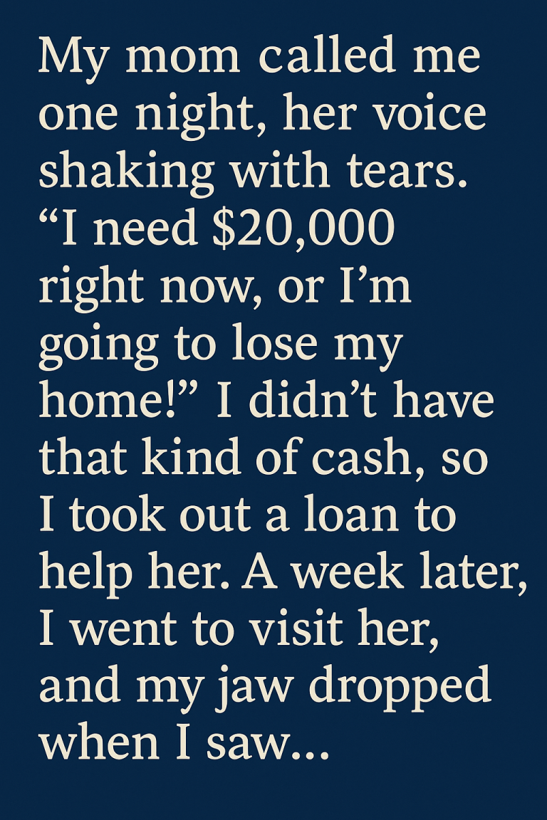 Growing up, she was my rock. The woman who worked double shifts, skipped meals so I could eat, and told me every single day, “Family comes first.” I believed her with my whole heart. So when she called me one night, voice shaking, crying that she’d lose her home without $20,000, I didn’t think twice. I didn’t ask for proof or details. I didn’t pry. I took out a loan I couldn’t afford—because she was my mom, and that was enough.