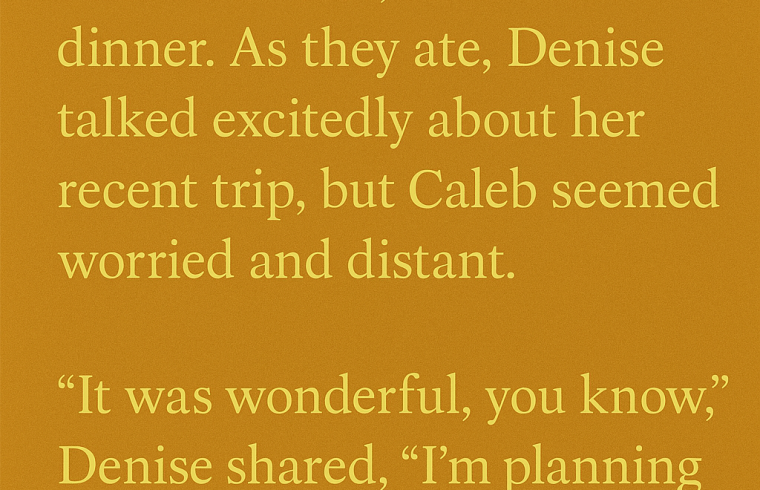 As they ate, Denise talked excitedly about her recent trip, but Caleb seemed worried and distant.