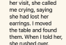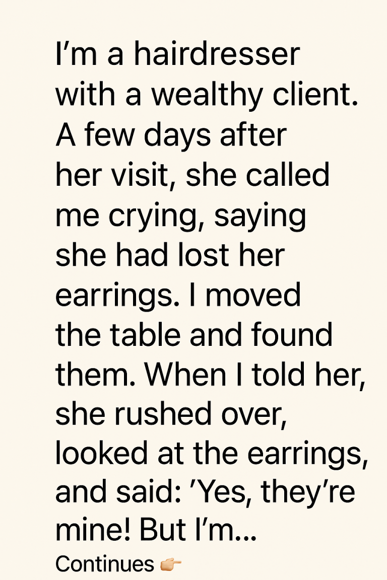 She rushed over as if the floor were on fire, snatched the earrings from my palm, examined them, and said in a strangely matter-of-fact tone: