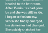 When she finally emerged, her entire mood had changed. She grabbed her purse and hurried out the door with my boyfriend’s dad.