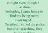 Shaking, I locked myself in my bedroom and called the police.
