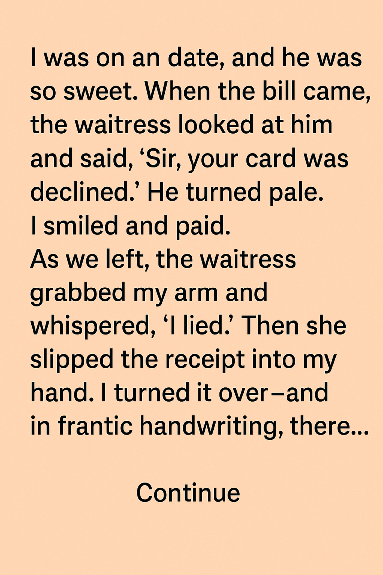 On a sweet first date, everything felt perfect—until the waiter approached and said my date’s card had been declined. Embarrassed, I paid the bill.