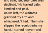 As we stepped out, the waitress grabbed my arm. Her voice was low.