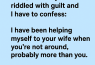 “Bob, I’m sorry. I’ve been riddled with guilt and I need to confess: I’ve been helping myself to your wife when you’re not around—probably more than you.