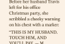 Three nights later, Travis texted her: