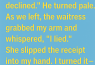 As we left, the waitress grabbed my arm and whispered, “I lied.” Then she slipped the receipt into my hand. I turned it over—and in frantic handwriting, there were 2 words: “Google him.” The moment I got home, I searched his name—and my blood ran cold. He was a fraud.