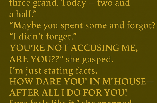 I confronted him one night, heart pounding so loudly I could barely speak.