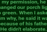 I live with my ex-husband, and without my permission, he changed our porch light to green. When I asked him why, he said it was because of his father who passed away recently. He didn’t elaborate. Why? What does a green porch light mean?