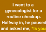I went in for a routine gynecological check-up — nothing unusual, just part of life. The doctor was kind, professional, chatting lightly to keep things relaxed. But midway through the exam, he paused and frowned.