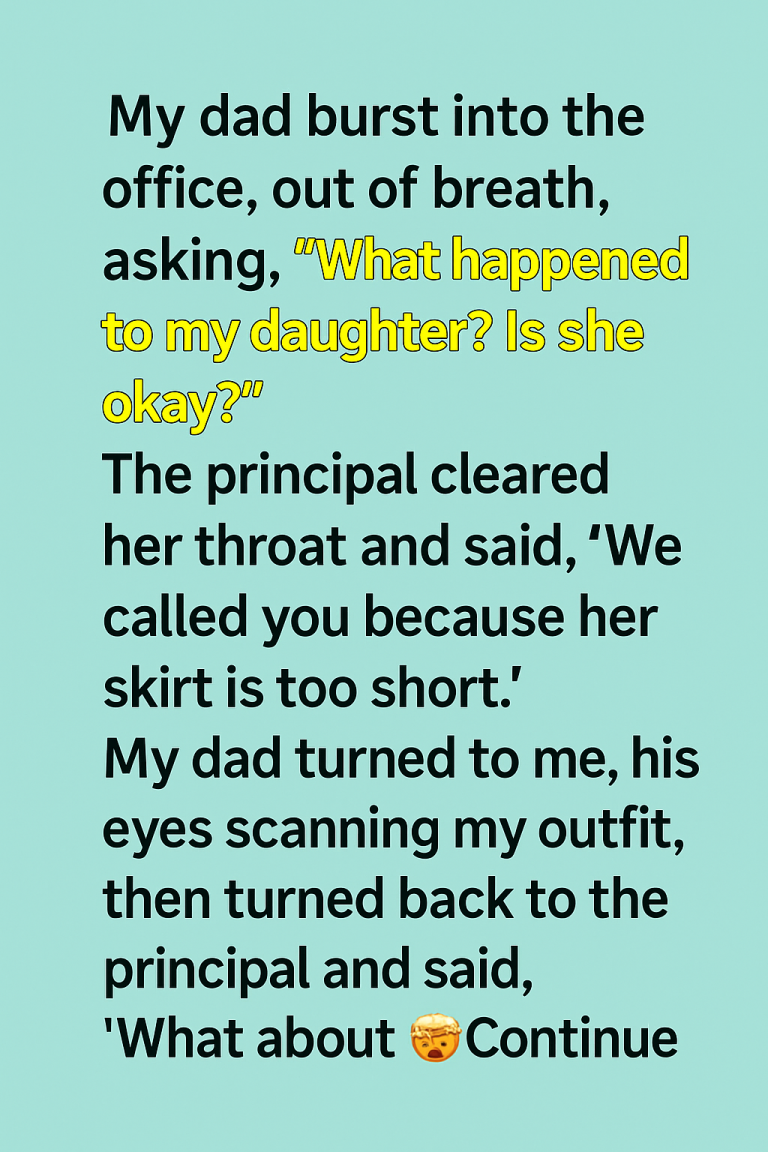 My dad turned to me, quickly scanning my outfit. His brow furrowed—not with anger, but confusion. Then he faced the principal.