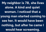My 78-year-old neighbor, Miss Lorraine, is the sweetest lady on our block—always offering cookies, waving from her porch, and asking about everyone’s day. So when a much younger man started visiting her regularly, I was curious.