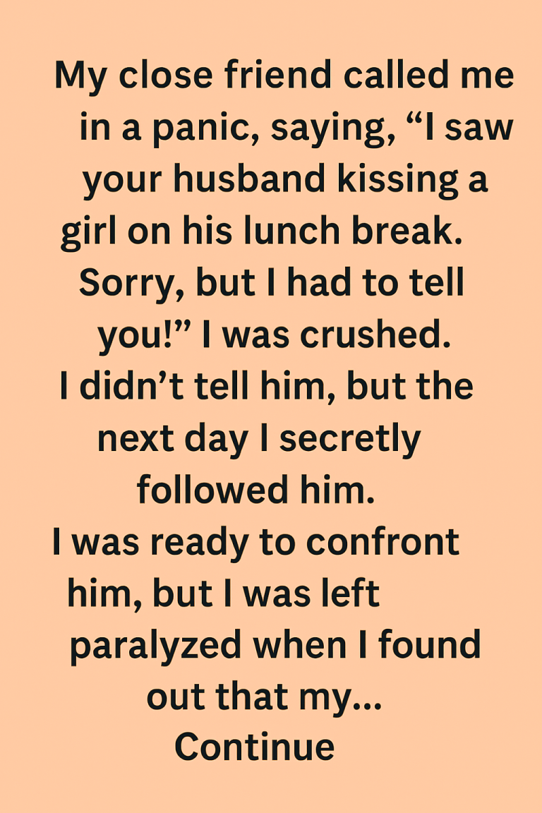 When my best friend called and said she saw my husband Bernard kissing someone, I felt the air leave my lungs. My world spun, my stomach dropped, and for a moment I couldn’t even hear my own thoughts. But instead of confronting him in a storm of accusations, I swallowed the panic and waited. Something in the way she described it felt… off.