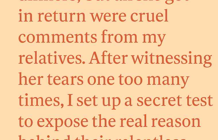 My wife Megan poured her heart into our family’s monthly dinners, but all she got in return were cruel comments from my relatives. After witnessing her tears one too many times, I set up a secret test to expose the real reason behind their relentless criticism. What I found out left me heartbroken.