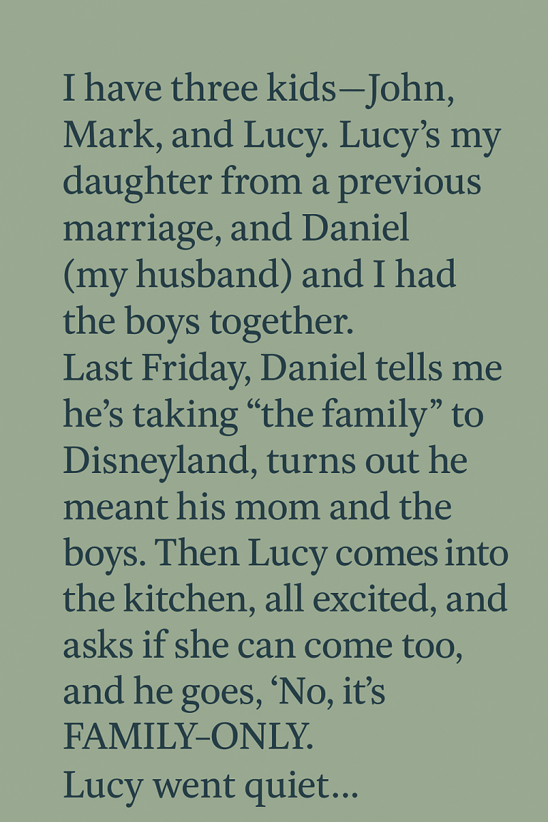Then Lucy came into the kitchen, bright-eyed and excited, asking if she could come too. Daniel didn’t even look up from tying the boys’ shoes.