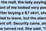 Security rushed over. The woman’s face flushed red. “I’m not a thief,” she said, flustered. “I bought a skirt. That’s all.”