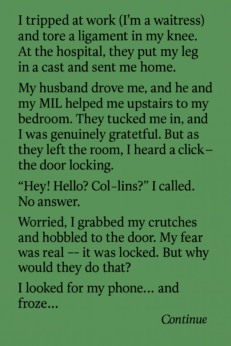 I grabbed my crutches and hobbled to the door. My hands shook. The handle didn’t budge.