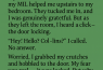 I banged on the door. “ARE YOU SERIOUS? OPEN THE DOOR!”