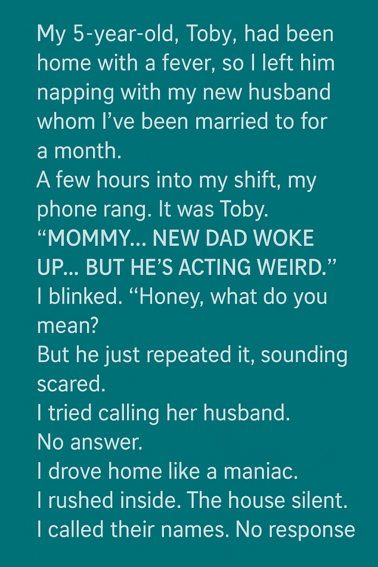 My 5-year-old, Toby, had been home sick with a fever, so I left him napping with my new husband—Mark—whom I’d married just a month earlier. A few hours into my shift, my phone rang.