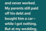 At the reception, during the speeches, my dad looked ready to claim the microphone. But I stepped up first. My palms shook, but my voice didn’t.
