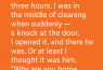 The knock came at exactly 2:07 p.m.