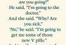“I’m heading to the doctor,” he replied matter-of-factly, patting his pockets for his keys.