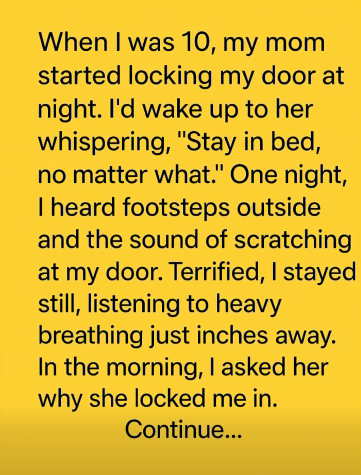 When I was 10, my mom started locking my bedroom door at night. I didn’t understand it at first — I wasn’t afraid of the dark, and our house was in a safe neighborhood. But every night, before she went to bed, she’d whisper through the door, “Stay in bed, no matter what.”