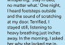 One night, I was almost asleep when I heard footsteps in the hallway. Slow. Deliberate. Then came scratching on my door—soft at first, then more frantic. Heavy breathing followed, just inches from my face through the door.